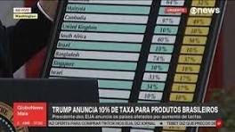 | EUA vão taxar todos os produtos brasileiros em ao menos 10%, anuncia Trump Donald Trump anunciou um "tarifaço" global sobre impostos de importação, com os produtos brasileiros sendo taxados em ao menos 10%.
